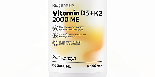 Biogenesis Витамин D3+K2 2000МЕ/50 мкг, капсулы 240 шт в наличии. Узнайте, как купить товар с бесплатной доставкой по Люберцам на странице «