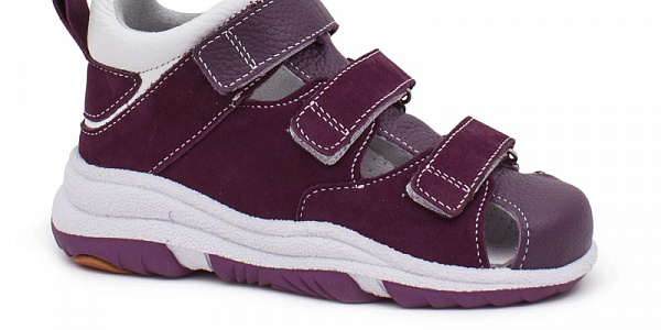 Сандали Orto-Care для девочек D-718-77/07KN сиреневые ORTO-CARE Назначение: плоскостопие Фиксация: на липучках Стелька: ортопедическая, съемная Высота каблука: 3 см Материал верха: натуральная кожа Материал подкладки: натуральная кожа Материал подошвы: термоэластопласт (ТЭП) Материал стельки: натуральная кожа, пенополиуретан Детские ортопедические сандалии - мягкая и комфортная модель фиксирующей обуви. Увеличенный жёсткий задник поддерживает голеностоп ребёнка и в сочетании с закрытым мысом предотвращает завал стопы. Каблук Томаса незаметно встроен в конструкцию подошвы из гибкого термоэластопласта: инновационное решение позволяет формировать правильный стереотип походки. Верх и подкладка выполнены из натуральной кожи с замшевыми вставками, что исключает натирание и возникновение мозолей при активной ходьбе. Съёмная ортопедическая стелька с кожаным перфорированным покрытием оказывает комплексное лечебно-профилактическое воздействие на детскую стопу. Быстрая и удобная фиксация изделия реализуется посредством трёх липучек Velcro по подъёму. Обувь рекомендована при детском плоскостопии, для коррекции и предупреждения деформационных процессов, для общего укрепления и поддержания отделов стопы ребёнка. Подбор размера Встаньте на лист бумаги и обведите контур стопы. На полученном контуре измерьте отрезок от самого длинного пальца до пятки. Это и есть длина стопы, указанная в таблице. 26: 16.5 см 27: 17 см 28: 17.5 см 29: 18.5 см 30: 19 см 31: 19.5 см 32: 20.5 см D-718-77/07KNlub /upload/iblock/1ea/1ea9d2583ea9c3772a60d3a969058e3c.jpg